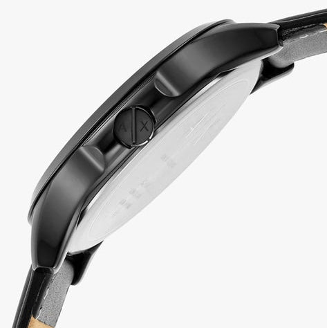 | Second Markers: | Minute Markers around the outer rim. The Armani Exchange logo appears at the 12 o'clock position |