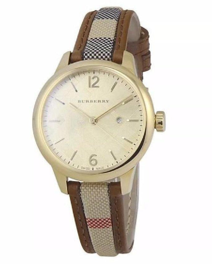Burberry The Classic Gold Dial Brown Leather Strap Watch for Women - BU10114