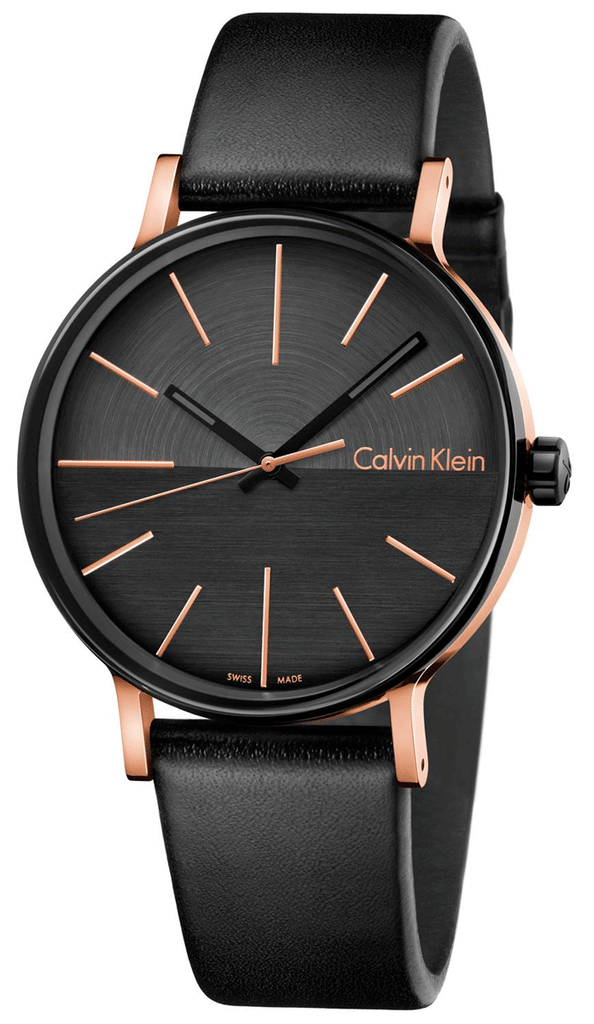 Calvin Klein Boost Black Dial Black Leather Strap Watch for Men - K7Y21TCZ