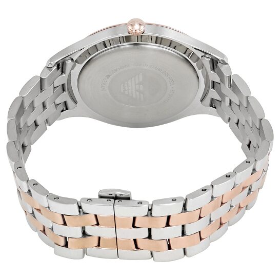 A timepiece for everyday wear, this beauty by Emporio Armani is made to tell the time in the most efficient way. The watch is made of two-tone stainless steel and it has a silver dial set with gold-tone hour markers, three hands, and a date window.