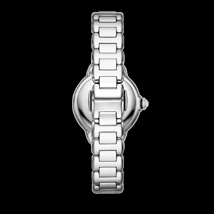 Elevate your everyday elegance with the Emporio Armani Mia, a timepiece that seamlessly blends sophistication with understated luxury. The luminous mother-of-pearl dial catches light beautifully, creating subtle depth and dimension on your wrist. Crafted with a polished silver steel strap and case, this watch delivers a refined aesthetic that complements both professional and casual settings. The precise quartz movement ensures reliable timekeeping, while the sleek design makes it an investment piece you'll treasure for years. Perfect for the modern woman who appreciates quality craftsmanship and timeless style.
