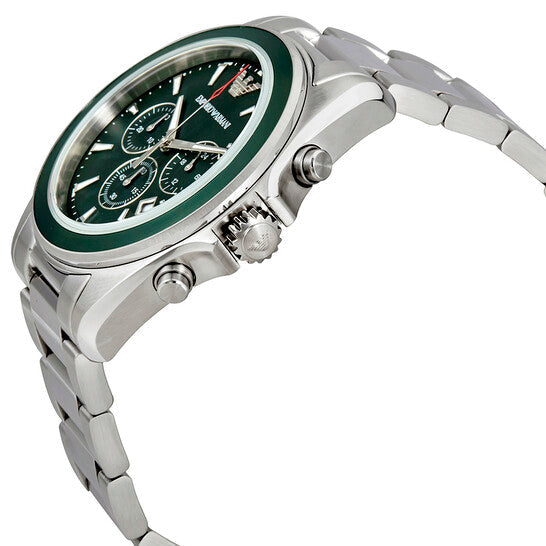 Silver-tone stainless steel case with an emerald green dial and silver stainless steel bracelet. This watch is shipped with its original box and official warranty.