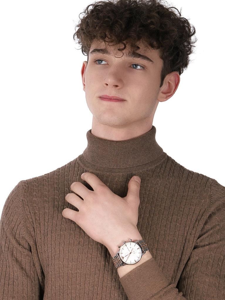22mm x 20.5cm Two-Tone IP Rose Gold Stainless Steel Bracelet with 316L Stainless Steel Deployment Clasp.