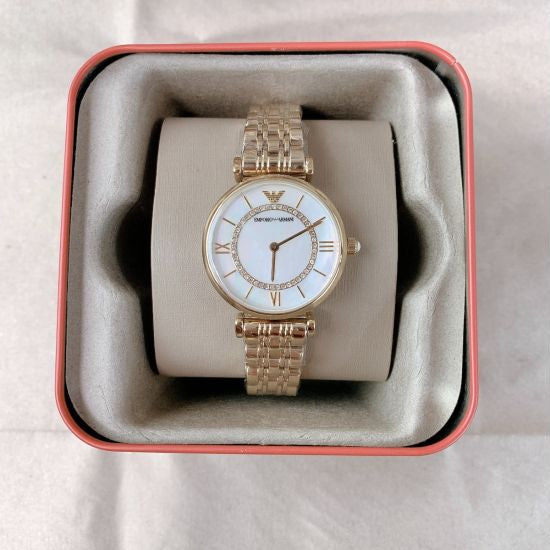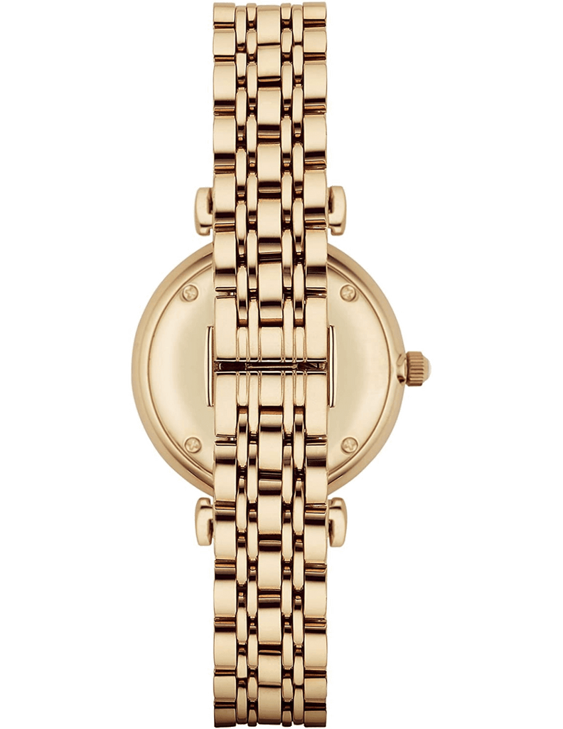 Emporio Armani Gianni T Bar Mother of Pearl White Dial Gold Steel Strap Watch For Women - AR190700