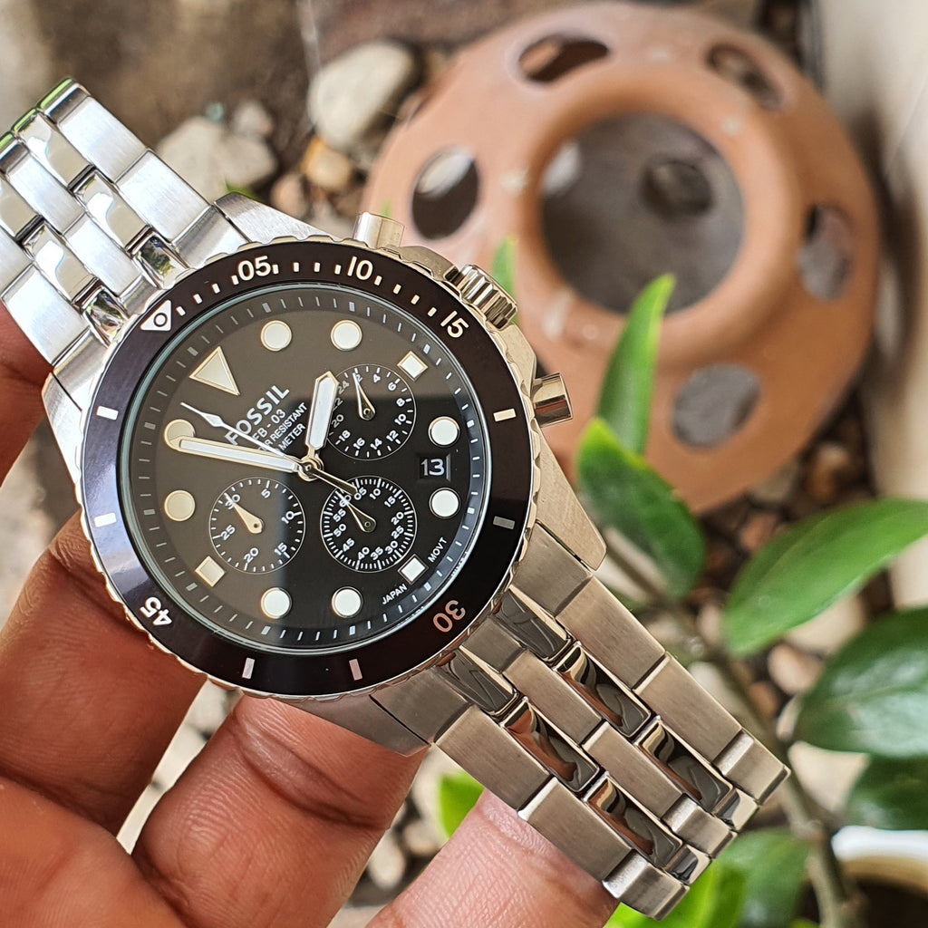 Fossil FB-01 Chronograph Black Dial Silver Steel Strap Watch for Men - FS5837