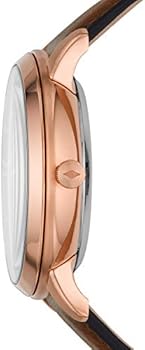 - Brown plated leather strap with single prong strap buckle closure; interchangeable with fossil 22mm watch straps
