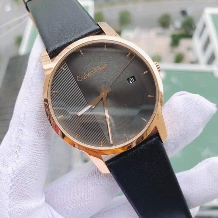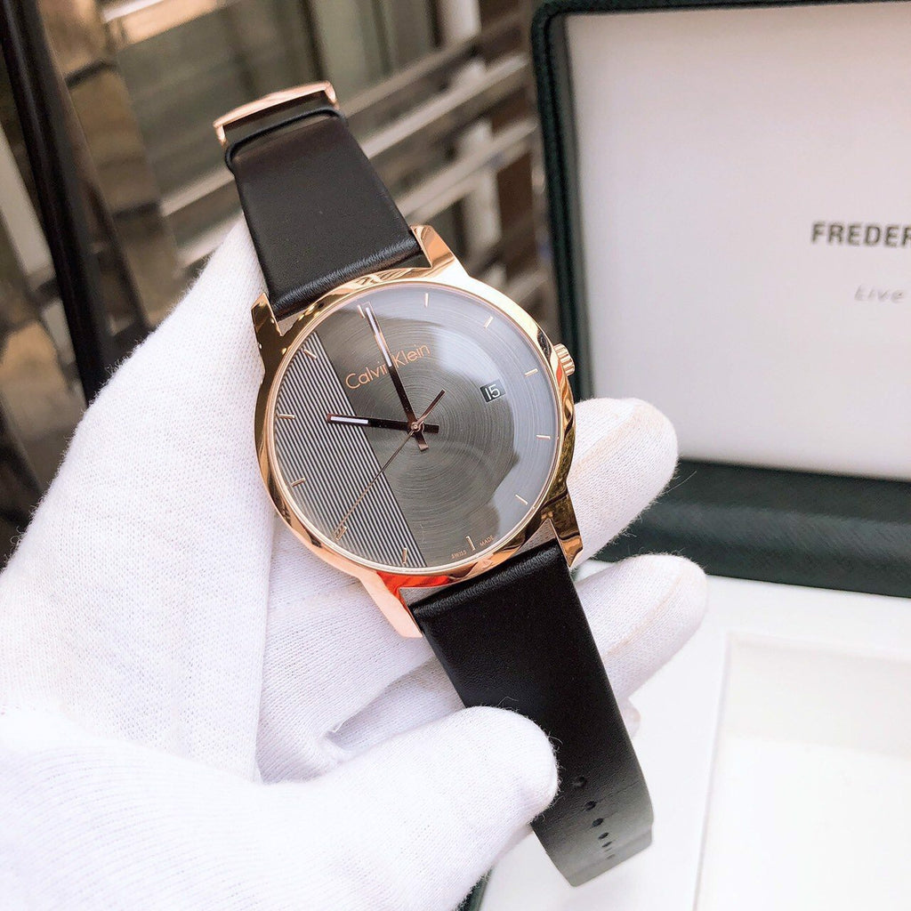 Calvin Klein City Quartz Grey Dial Black Leather Strap Watch for Men - K2G2G6C3