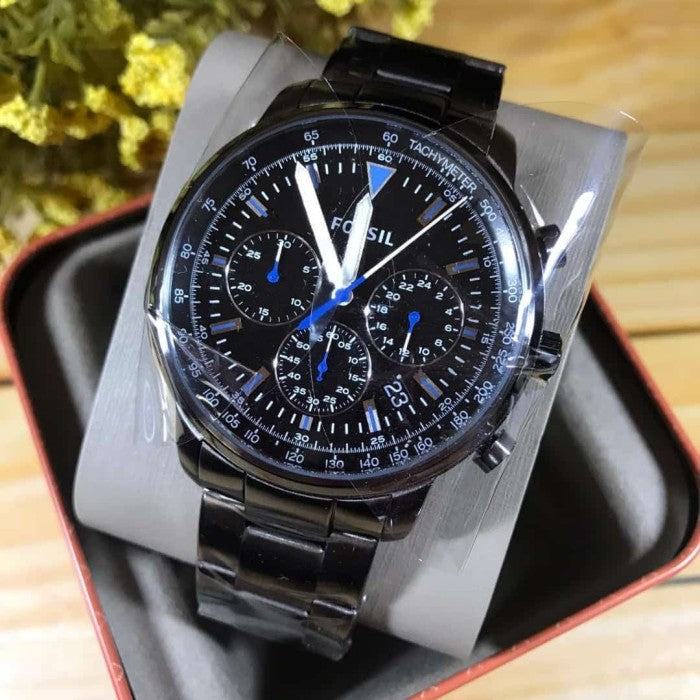 Fossil Goodwin Chrono Analog Black Dial Grey Steel Strap Watch for Men - FS5518