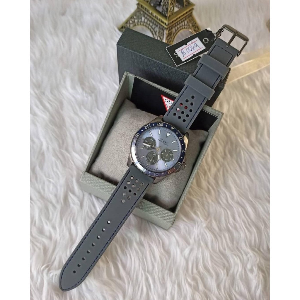 Guess Odyssey Blue Dial Grey Rubber Strap Watch For Men - W1108G6