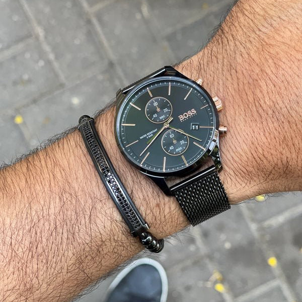 Hugo Boss Associate Chronograph Black Dial Black Mesh Bracelet Watch for Men - 1513811