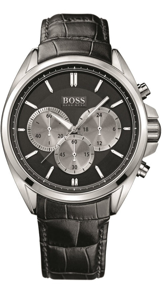 Hugo Boss Driver Chronograph Black Dial Black Leather Strap Watch for Men - 1512879