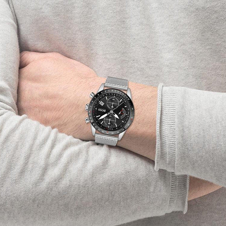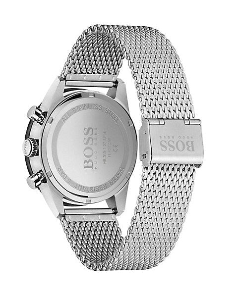 Hugo Boss Pilot Edition Chronograph Black Dial Silver Mesh Bracelet Watch for Men - 1513886