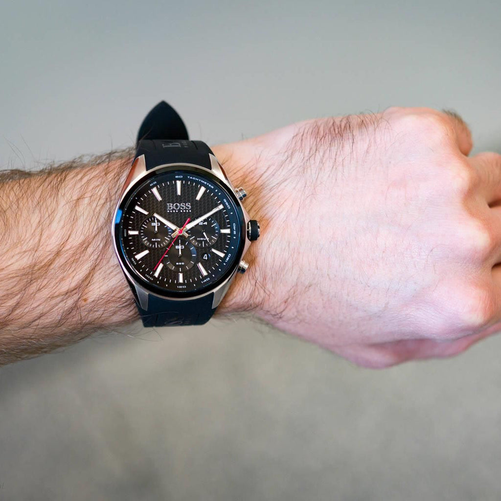 Hugo Boss Distinct Chronograph Black Dial Black Rubber Strap Watch for Men - 1513855