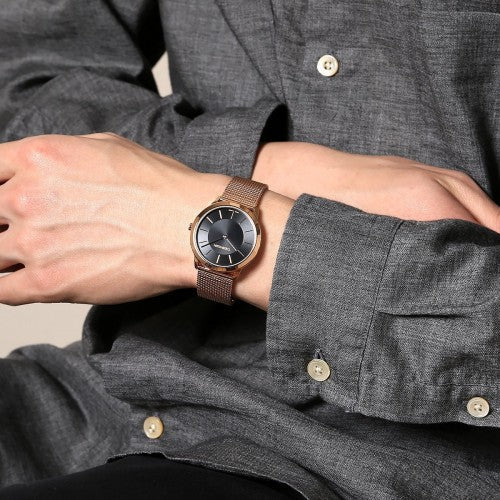 Calvin Klein Minimal Black Dial Rose Gold Mesh Bracelet Watch for Women - K3M2262Y
