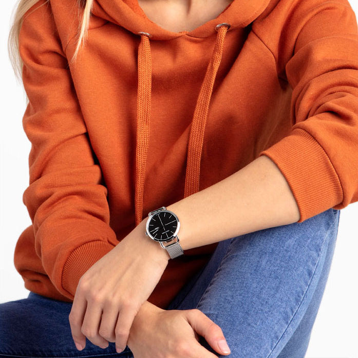 CALVIN KLEIN Even K7B23121 is an amazing and interesting Ladies watch. Case is made out of Stainless Steel, which stands for a high quality of the item and the Black dial gives the watch that unique look. 30 metres water resistancy will protect the watch and allows it to be worn in scenarios where it is likely to be splashed but not immersed in water. It can be worn while washing your hands and will be fine in rain. We ship it with an original box and a guarantee from the manufacturer.