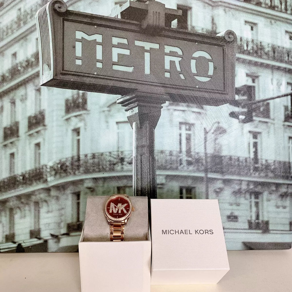 Michael Kors Janelle Quartz Maroon Dial Rose Gold Steel Strap Watch For Women - MK7382