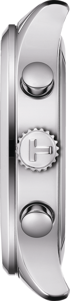 Swiss Quartz. Chronograph movement. Calendar: Date at 4 o'clock. Chronograph sub-dials display: 1/10th of a Second, 60 Second, 30 Minute, Date. Powered by Renata 394 Battery Powered engine. Watch functions: Date, Hour, Minute, Second, Chronograph, Battery End Of Life Indicator. Push-Pull crown. Scratch Resistant Sapphire crystal. Round case shape. Case size: 45mm. Case thickness: 11mm. Solid case back. 100 Meters - 330 Feet water resistant. 2 year warranty. Also known as model: T1166171109200.