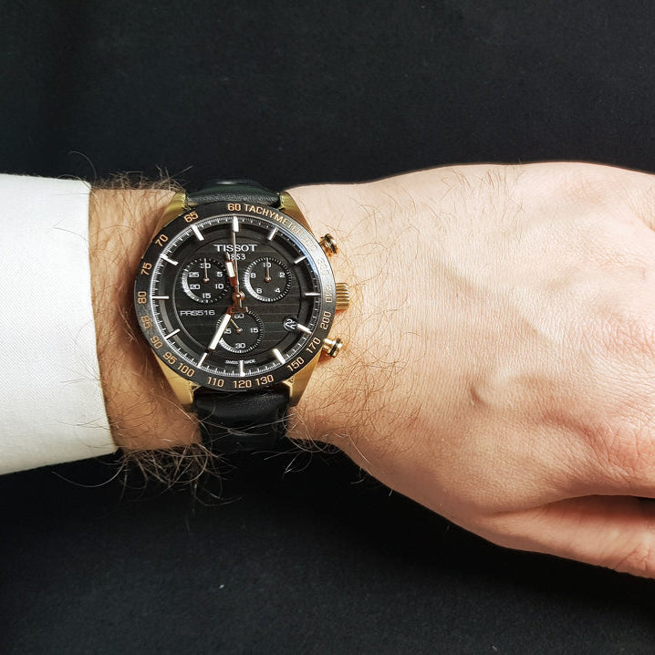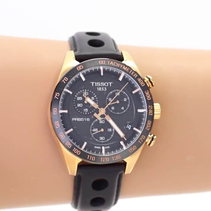 Tissot T100.417.36.051.00 PRS 516 Men’s Watch. The case is made out of Rose Gold Stainless Steel with a Rose Gold bezel, which stands for the high quality of the item, it has a Black Dial. This model has got 100 meters of water resistance. it can be worn in scenarios where it is likely to be splashed but not immersed in water and will be fine in rain. The watch is shipped with an original box and a guarantee from the manufacturer.