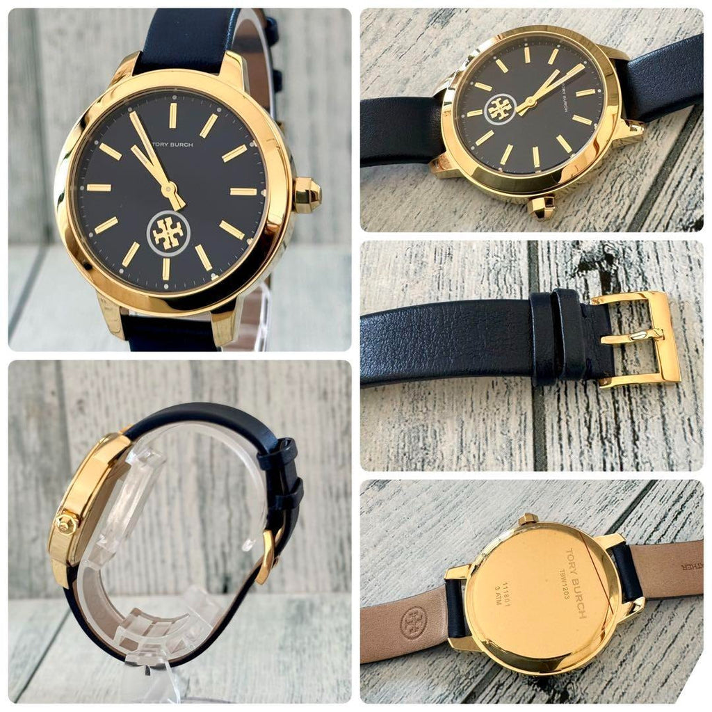 - Three-hand analog display with quartz movement. Scratch-resistant mineral crystal. Navy dial includes gold-tone hands and hour markers, iconic double T logo, minute track, and Tory Burch detailing. Octagon-shaped crown. Water resistant 5 ATM. Logo medallion display case included features drawer, pull-out compartment, and note from Tory Burch. Imported. Measurements: Case Height: 38 mm Case Width: 38 mm Case Depth: 9 mm Band Width: 14 2⁄9 mm Band Circumference/L