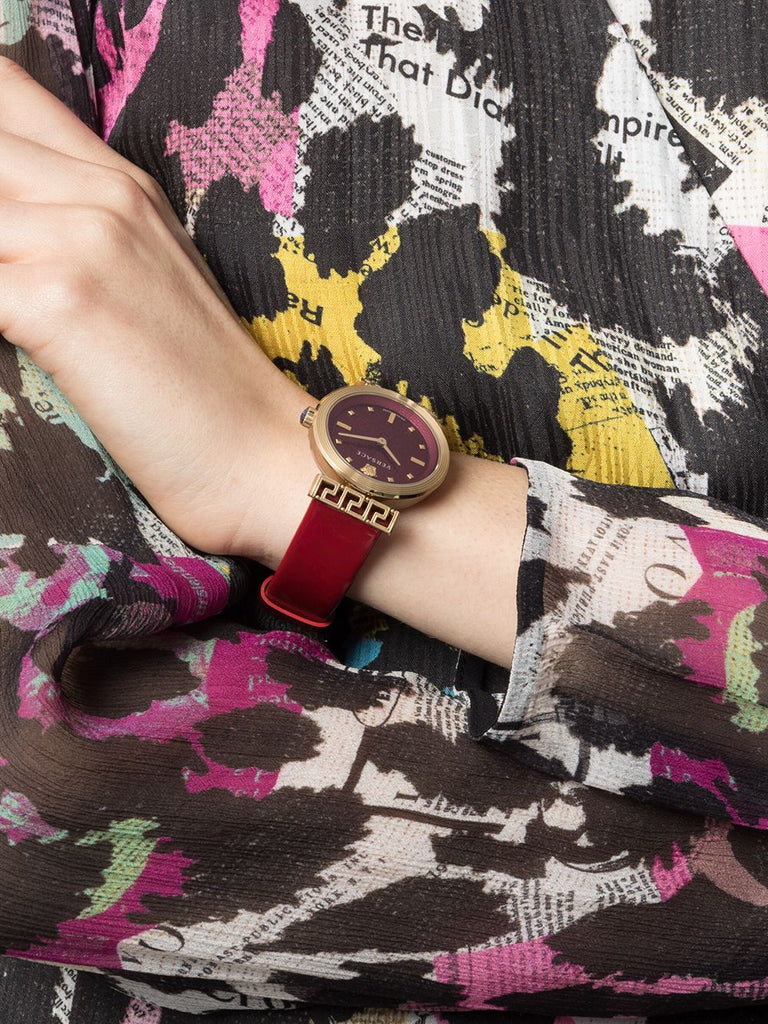 Versace Greca Meander Red Dial Red Leather Strap Watch for Women - VELW00320