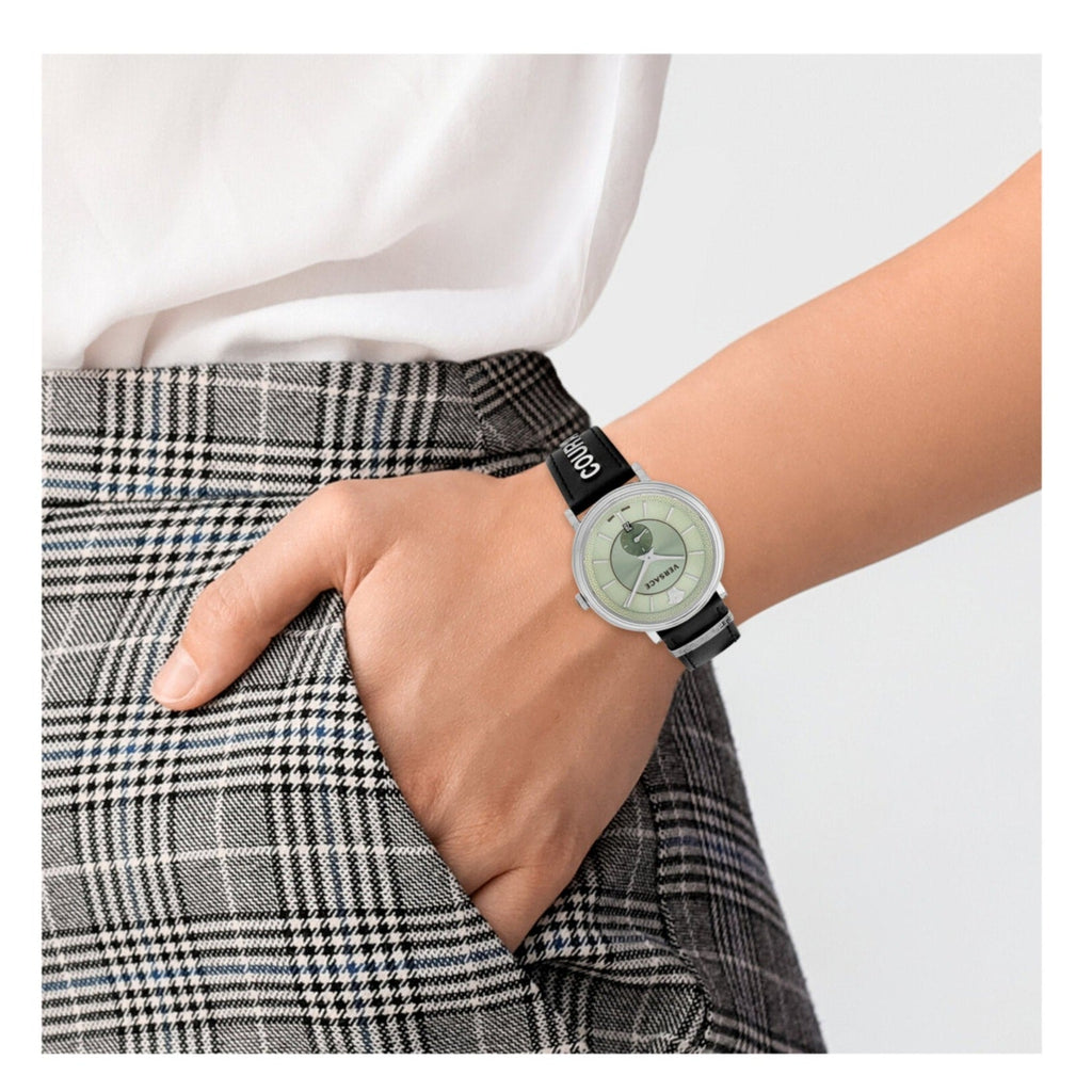 Love, courage, power and strength are the positive messages conveyed by Versace in this watch, V-Circle, the manifesto edition. It features a slim top ring and rehaut with a Greek key pattern. The case comes in a size of 42 mm diameter with small second hand and date display. The soft leather strap, also with contrasting edges is embellished with a Greek key engraved band. It also features case thickness of 7.40 mm.