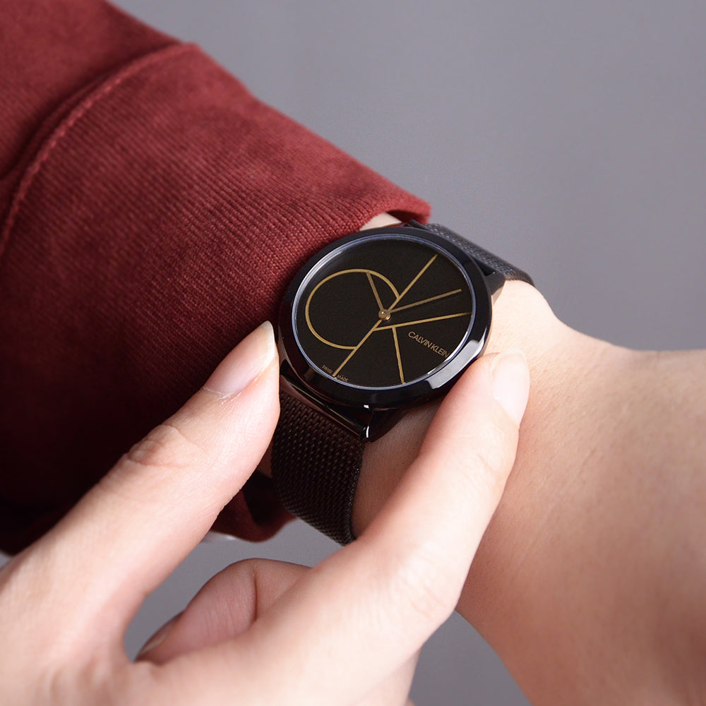 Calvin Klein Minimal Black Dial Black Mesh Bracelet Watch for Women - K3M224X1
