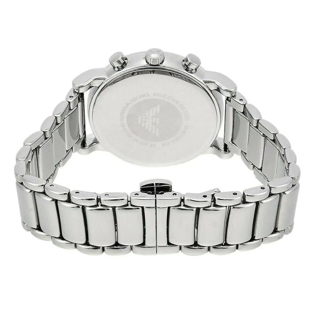 Emporio Armani AR11132 is a 43mm men's watch with a silver-tone case, blue dial and stainless steel bracelet. It comes with its original box and 2 year warranty. It's water resistance of of 50m is an added advantage.