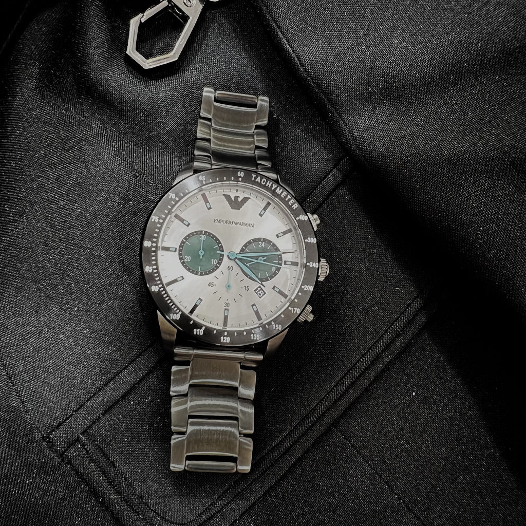 Emporio Armani Mario Chronograph White Dial Black Steel Strap Watch For Men - AR11471