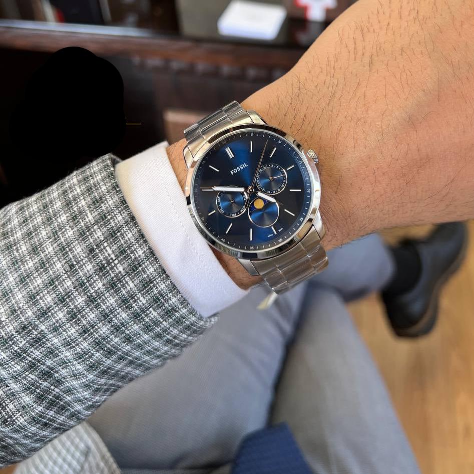 Fossil Neutra Minimalist Moon Phase Blue Dial Quartz FS5907 Men’s Watch It’s an iconic fossil watch they redesigned and introduced with a new celestial feature. It has everything you might need in a daily urban life – the days, the day, and the time. It’s an excellent choice for the office, the formal parties and weekend fine dining. You also don’t need to take it off while playing the club sports, including in the pool.