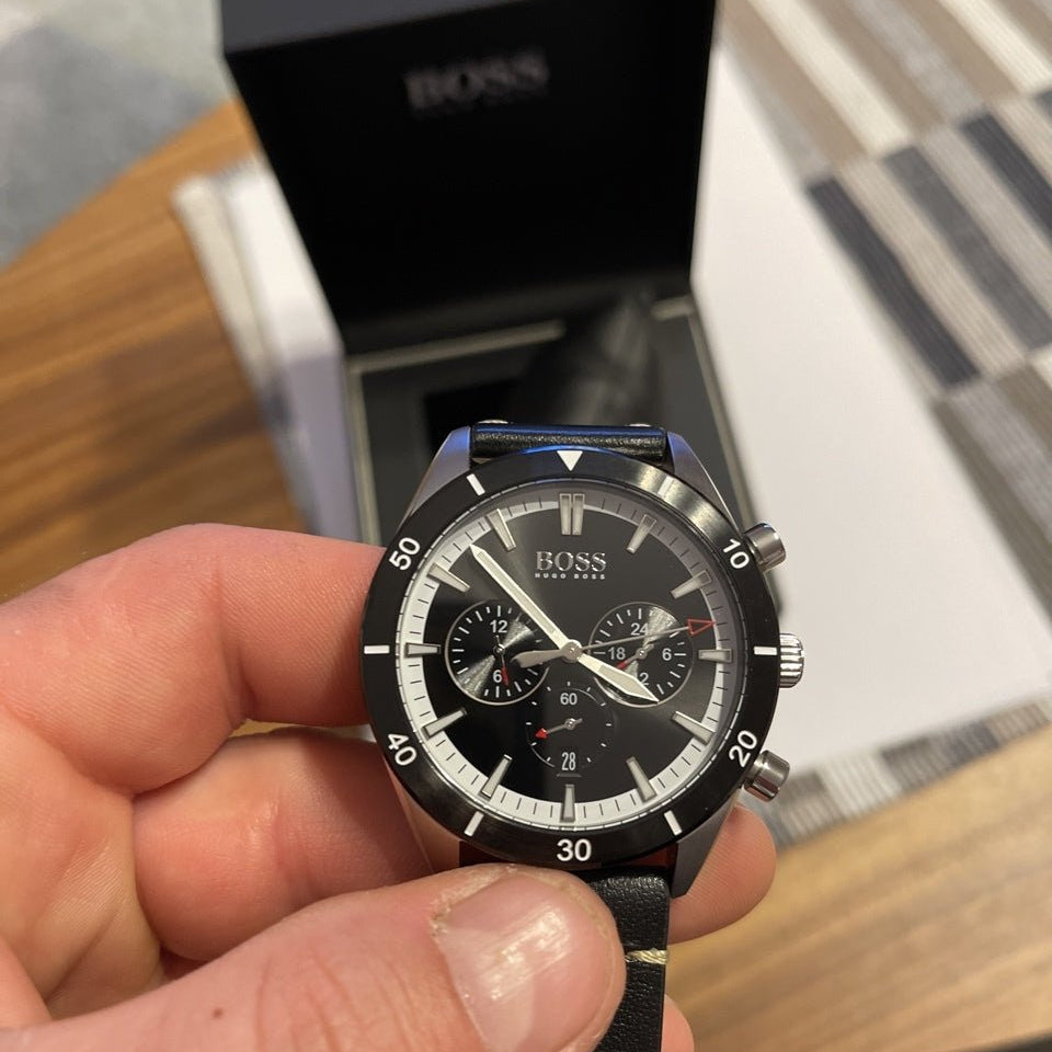 The Hugo Boss Globetrotter Chronograph is engineered for the modern man who demands both style and precision. This striking timepiece features a bold black dial paired with a refined black leather strap, delivering sophisticated elegance for any occasion. The chronograph functionality provides practical timing capabilities, while the robust construction ensures durability through your daily adventures. With Hugo Boss's reputation for quality craftsmanship, this watch seamlessly transitions from boardroom to weekend getaway. A timeless investment that elevates your wrist game and complements any wardrobe.