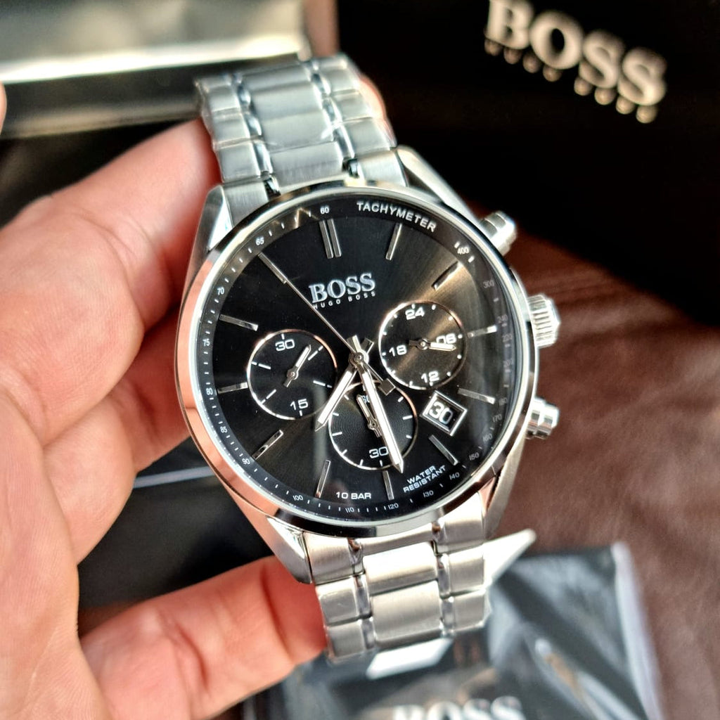 Hugo Boss Driver Chronograph Black Dial Silver Steel Strap Watch For Men - 1513080