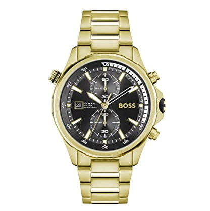 The Hugo Boss Globetrotter Chronograph is engineered for the modern man who demands both style and substance. This striking timepiece features a sophisticated black dial paired with a luxurious gold steel strap, creating an elegant contrast that transitions seamlessly from boardroom to weekend adventures. The chronograph functionality delivers practical precision for timing life's important moments, while the robust steel construction ensures durability through years of wear. With Hugo Boss's reputation for refined design, this watch makes a confident statement about your taste and attention to detail. Perfect for professionals seeking a versatile accessory that commands respect and complements any wardrobe.