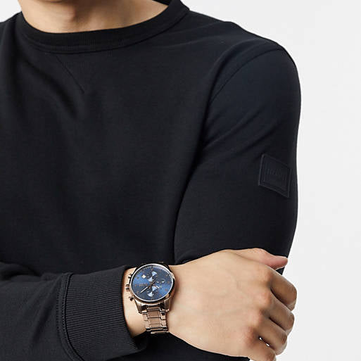 Hugo Boss Skymaster Chronograph Blue Dial Brown Steel Strap Watch for Men - 1513788