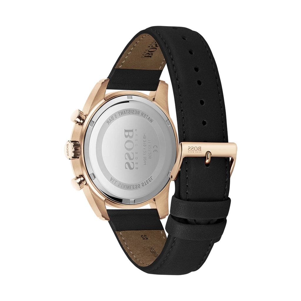 Hugo Boss Skymaster Chronograph Blue Dial Black Leather Strap Watch for Men - 1513783