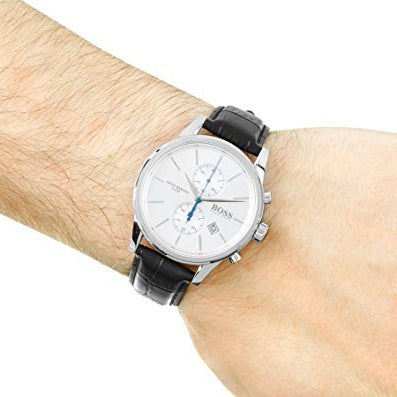 Hugo Boss Jet Chronograph White Dial Black Leather Strap Watch for Men - 1513282