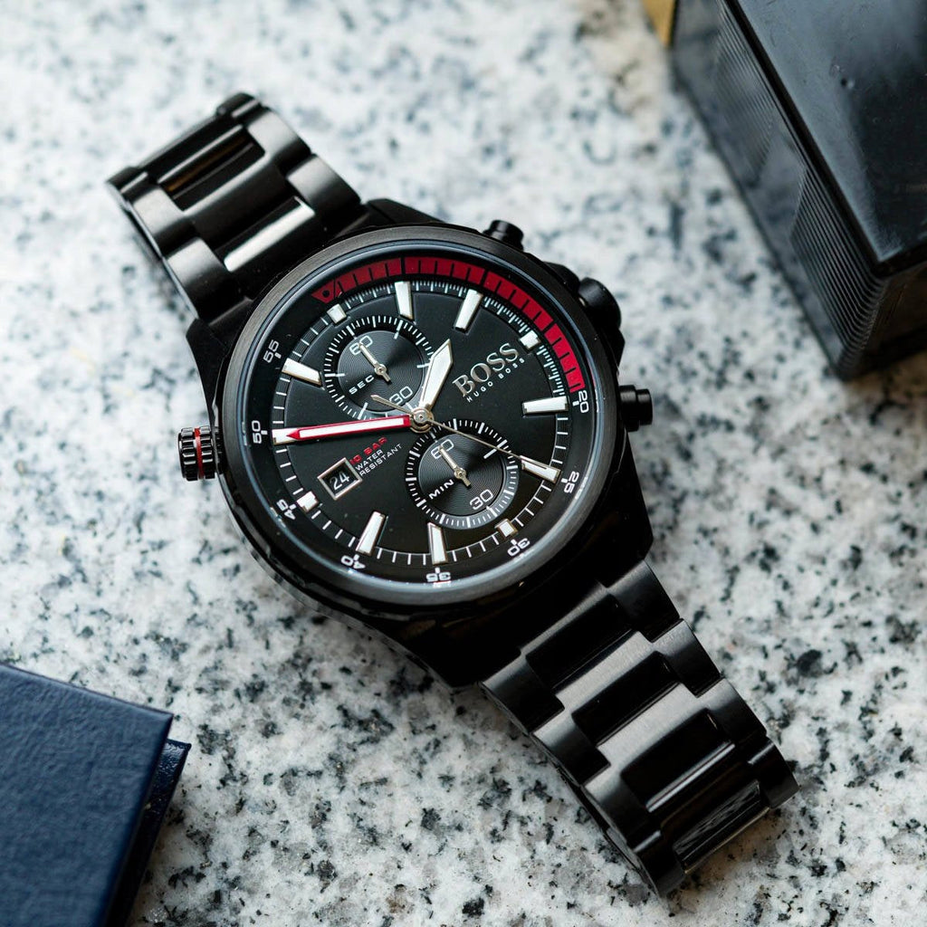 The Hugo Boss Globetrotter Chronograph is engineered for the modern man who demands both style and substance. This striking timepiece features a bold black dial paired with a sleek black steel bracelet, delivering a sophisticated look that transitions seamlessly from boardroom to weekend adventures. The chronograph functionality puts precision timing at your wrist, while the robust steel construction ensures durability through years of wear. With Hugo Boss's reputation for refined design, this watch makes an impressive statement about your taste and attention to detail. Perfect for those who refuse to compromise on quality or aesthetics.
