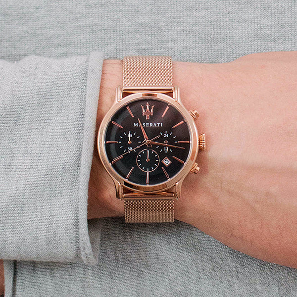 Maserati Epoca Black Dial Gold Mesh Bracelet Watch For Men - R8873618005
