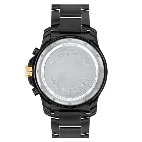 Discover the ultimate combination of style and functionality with the Movado Series 800 Chronograph Watch. Boasting a sleek black steel strap and a bold black dial, this watch exudes confidence and sophistication. With its precise chronograph movement, it's the perfect accessory for any modern man on-the-go. Elevate your look and stay on schedule with the Movado Series 800.