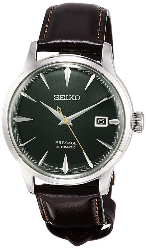 Seiko Presage Cocktail Time Automatic Green Dial Brown Leather Strap Watch for Men - SRPD37J1