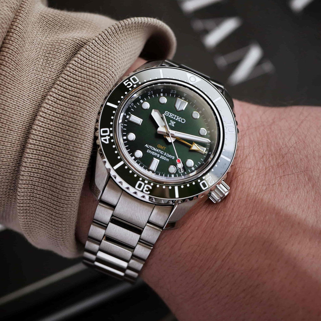 Seiko Prospex GMT Divers Automatic Marine Green Dial Silver Steel Strap Watch For Men - SPB381J1