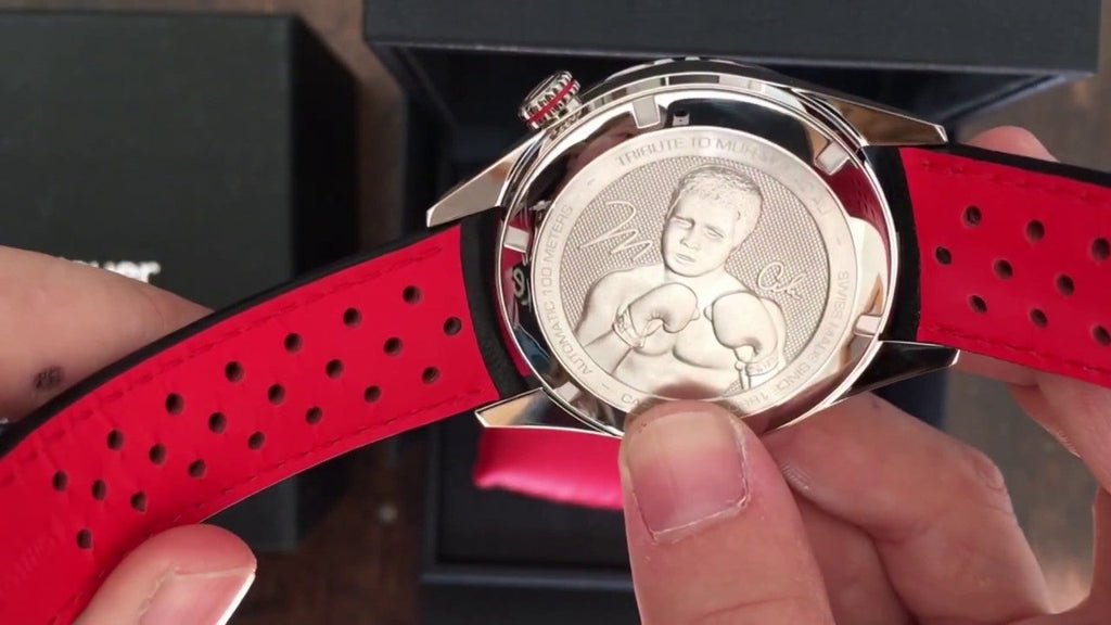This special edition features an engraving of Muhammad Ali on the case back along with his signature printed on the dial above 6 o'clockPowered by an Tag Heuer Calibre 5 self-winding mechanical movement which contains 26 jewels and has an approximate 38-hour power reserve. Date display is located at the 6 o'clock position. Comes with Tag Heuer box, papers