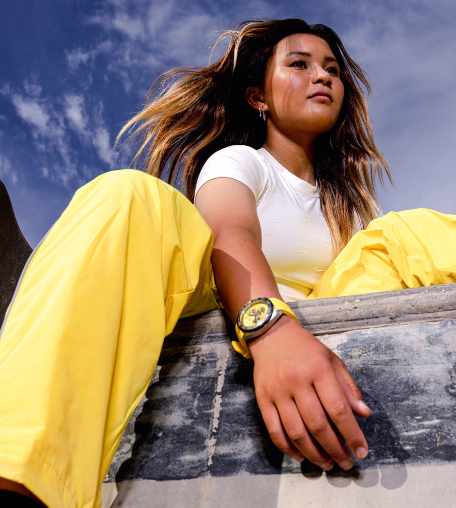 Stand out with a bold yellow sunray brushed dial and high-quality yellow rubber strap. Perfect for a sportive look and an unmissable statement.