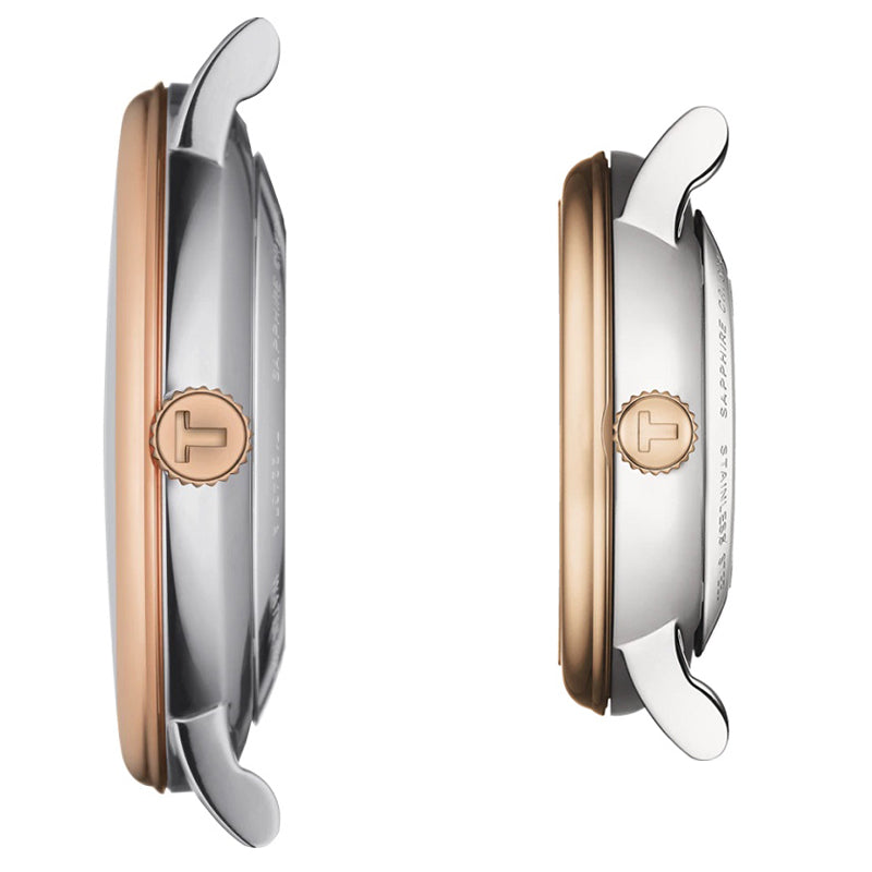 The Tissot Carson, an all-timer which will suit any time or place, will be the perfect partner to accompany you to every great occasion in your life so that every moment you live is right on time. Its classic style allows it to never go out of date, while giving it its sumptuous look, highlighted by a graceful dial design and elongated fine hands that move around the dial in time. Two tone stainless steel with rose gold PVD coating case and bracelet, silver dial. Case size 40 mm. Water resistance 50 meters.