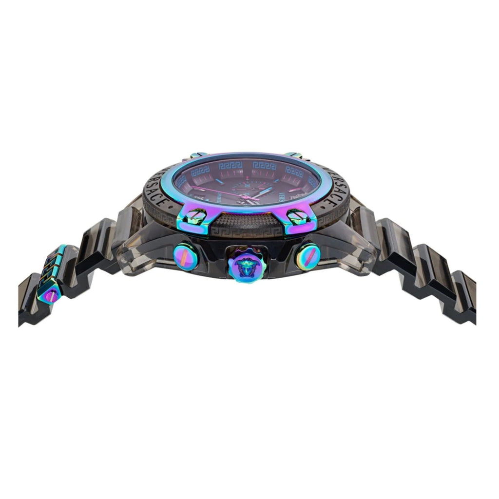 The coolest watch that meets the anticipation of an audience looking for something new and trendy. The Icon Active conveys an urban and sporty look with its transparency and color. Absolutely and exquisitely iconic, design elements include the metal loop on the strap that recalls the Greek Key, a Medusa at 12H and an internal Greek Key that can be seen from the curvature of the inner dial ring.
